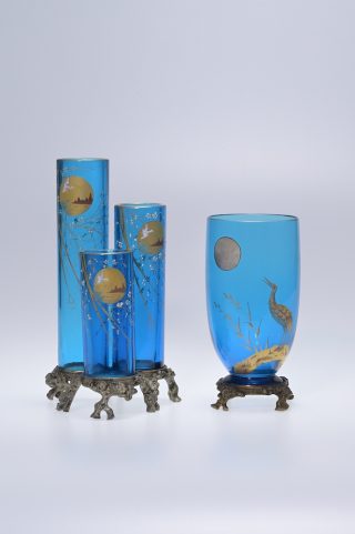 (右)バカラ《台付花器「月に鶴」》1878年頃